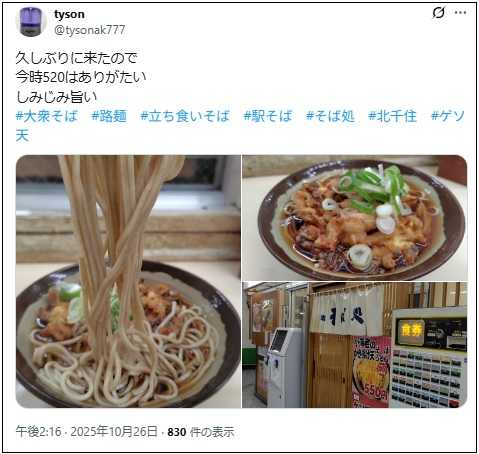 ●小諸そば EQUiA 北千住店@北千住駅 で… 2025.11.09
