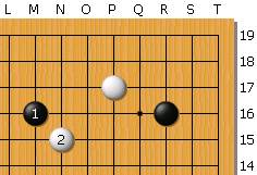 さて、本日は最近の実戦に出てきたものを紹介するとしよう。 まずはこれ。 小目、小ゲイマ掛り、二間高バサミに対して白はN15(この形はチキリトビって言うんだっけ?)。たまに見かける形だが実戦で打たれたのは初めてだった。しかもなナゼかこの対局の後、別の対局者にもこの手を打たれた。流行ってるのか?この定石は色々変化があるんだよな・・・。 もう一つ紹介しよう。 普段はほとんど打たない十秒碁でのこと。星に掛かったら白O14!これは初めて見た。対策は・・・よく分からん。でも言えることは、はじめの図にしてもこの図にしても、すぐにハザマをついていくのは駄目そう。単にヒラいたり、三々に入ったりすれば普通なのかな。まぁ配石次第ってとこか・・・。 普段よくある形しか打たないからな~。こういう変わった手が来るとすぐにおかしくなってしまう。(-。-)y-~~~~