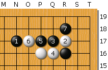 昨日と今日で6局打った。結果は3勝3敗だったのだが、内容は1勝5敗と言っていいだろう。そして、この6局では簡単な見落としが目立った。コウダテを打ったつもりが後手を引いてしまったり、2手先が分かってなかったり、観戦していた方が帰って行ったり。(T0T) やはり、1日に何局も打っていると集中力がなくなってくるのだろうか?自分の場合は1日に2局位が限界なのかも。~おまけ~ 先日の対局で黒1に白2とコスミを打ったら下ツケを打たれた。実戦はQ17にハネ出したのだが、いまいちうまくいかなかった。かと言ってO17にハネるのも甘そうだし・・・。どうすりゃいいだろう?