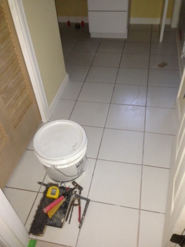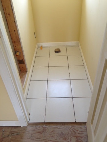 昨日からタイル工事を始めました。 トイレの床からです。 早速打ち合わせをして タイル割付の基準点を話しました。 ボンドにて張り付け完了。 数時間放置して乾かします。 そして目地を入れます。 目地を入れたら、またしばらく落ち着かせます。 そしてふき取り。 本日 もう一度綺麗にふき取りをして完了となります。 そして他の部分の施工です。 モザイクタイルの張り付けです。 こちらは面積が小さいので、あっという間に完了。 ネット貼りのため、このまま半日以上放置します。 今日 目地を入れて完了となります。