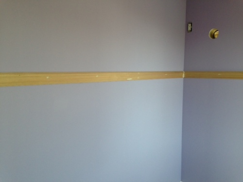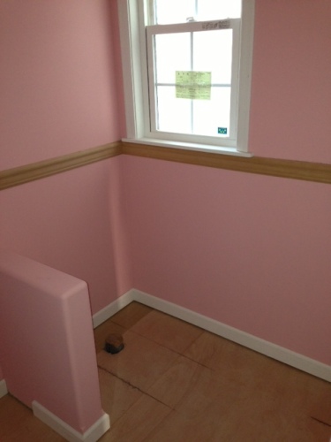 今日から出来るところから進めるため、塗装屋さんに入ってもらってます。 朝から午後3時くらいまでかかって、パテ入れで下地を作ってくれていました。 そしてやっと下塗りです。 ロゼットやチェアレールにもホワイトが入り、一体的になりました。 造作ではニッチの加工が終わり、塗装を待っています。そしてこの部品は? わかりますでしょうか 正解は 窓台下にもモールディングをつけて、その最後にも 小トメといって、ラインを出すためにカットしてもらった材料です。仕上がると こんな感じです。 今日は階段の下地を作っておりますので、後日また更新したいと思います。