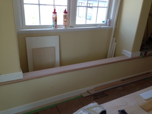リビングにちょっとあると便利な収納を作り始めます。 アメリカの階段材やモールディングを使用して、形を作っていきます。 これからどのように変化をして行くか、またご紹介します。