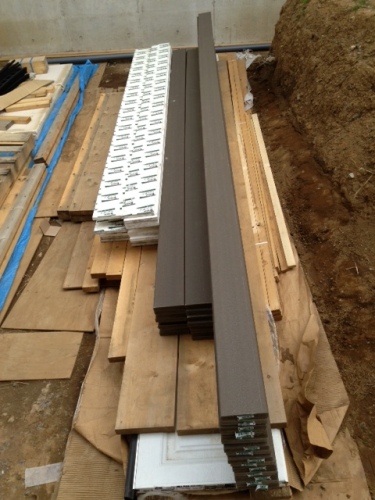 時間がかかりましたが予定通りフローリングが完了しました。 養生をしてしまったのでわかりませんが、玄関の入り口(段差)の部分には、カマチという部材を使用します。 しかし輸入住宅の場合には、その部分にもこだわりを持たなくてはいけないので、通常階段に使う部材を使用します。 スターティングステップという建材なのですが、アメリカ仕様だと19mmあります。 それに対してフロアーは15mmなので段差がついてしまいます。 そこで15mm仕様の部材を探して使用しました。 それによりぴったりと高さが合っています。 フロアーが終わるとドア関係もつけられるので、早速施工開始です。 あらかじめドア工場で加工された部材を使いますので、その通りに組み立てて行きます。 監理のあと会社に戻るとガレージに大きな荷物が届いていました。 送り主はウッドデッキの材料を仕入れている会社で、確かにバイナルフェンスのサンプルを送りましたと連絡がきましたが、まさかこんなに送ってくるとは思いませんでした。 時間がある時に、会社入り口に実際に施工してみたいと思います。