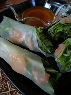 いつも読んでいただいてありがとうございます。blogランキング参加中今日もぽちっとお願いシマース。皆さんの応援が励みになります!今日は大切なお客様が来るので、久しぶりにお料理をしました。普段はお友達と出かける以外3食ほぼ自炊なのですが、料理とはおこがましくていえないようなシンプルな素食。毎日3食なので時間がかからず、栄養のバランスを整え、ボリュームがある(笑)ことがポイントなので、今の季節は大鍋料理がほとんど。で、気分的にたまにはエスニックフードが食べたくなる!最近おうちでまったりがが心地よい私としては、美味しいお店探して行くより、作っちゃったほうが早いし。ということで、今日のおもてなしは独断と偏見で、エスニックフード中心に。お客様方に材料を聞かれたのでここに記しておこう。まずはめちゃめちゃ食べたくてしょうがなかった、「ベトナム風生春巻き(ゴイクーン)」。簡単なんだけど、ちょっと手間がかかるんだよね。。。だからお店では高いのかな?◎グリーンレタス・香菜(青ねぎ、白髪ねぎ、三つ葉)・大葉・剥きエビ・スウィートチリ次は有元葉子さんの「玄米」という本に載っていてめっちゃ作りたかったもの。って、初めて作るんかいっ!大切なお客さまなのに、初めて作る料理を出すめっちゃチャレンジャーな私。でも大好評でみんなめっちゃおかわりしてました。こちらもヴェトナム料理だそうです。「玄米ナッツゴハン」◎玄米・ピーナッツ(生&皮付き)桜海老・にんにく・赤唐辛子・香菜・揚げ油(生ピーナッツ・エビ・にんにくを素揚げする為)・天然塩・粗引き胡椒ここからのメニューは、うちの近所で買える、毎日新鮮な無農薬野菜を売りにくるおばちゃんから購入た野菜を使った、普段の素食シリーズ。「ほうれん草とチーズのサラダ・バルサミコ風味」◎新鮮なほうれん草・アーモンド入りチーズ・レッドオニオン・トマト・オリーブオイル・バルサミコ酢・粗引き胡椒・「小松菜とおじゃこの温野菜サラダ・ゴマ味噌だれ風味」◎新鮮な小松菜・おじゃこ・あわせ味噌・みりん・すりゴマ(黒)夜中の3時頃、人参の千切りの為包丁の音をマンションに響き渡らせていた迷惑な私。。。でもそのおかげで味がしみて美味しかった~。よく作り方を良く聞かれるサラダです。簡単ですが、味をしみさせるので一晩時間が必要。「にんじんサラダ」◎人参・レーズン・松の実(今日は食感の似ているカシューナッツ)・オリーブオイル・バルサミコ酢・天然塩この野菜シリーズはシンプルなんですけど、どれも素材のよさがわかる品。皆さんお野菜の天然の甘み・味に感激していました。(野菜のおばちゃん、やったね)後はお口休めに、◎カリッカリのバケット&オリーブオイル・オーガニックの苺ジャム作るのに2時間しかなかったので、作れなかったもの。。。残念。タピオカデザートを作りたかったんだけど。。3時という微妙な時間でしたが、どれもボールいっぱいに作ったのですが、野菜中心で軽いのでどんどん召し上がってくださいました♪「美味しい! 美味しい!」といっていただけると、つくりがいもあるってものです。私の大好きな紫のお花をたくさんと、美味しいフルーツロールケーキの差し入れもいただいて、めちゃハッピー♪楽しいおしゃべりとちょっとつまめる食事があれば、それだけでハッピー素敵なひと時をありがとうございます