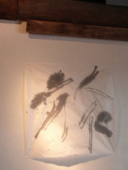 アンジェラを一文字で表してくださいました。 今週が第1回目となる踊る書家・アキラさんの書のワークショップ。 「踊るように 自由に 書を書こう」 なぜ踊る書家か?身体全体を使って、大きな書を書いているときにまるで踊っているみたいだ!とご友人が命名されたそう。大胆な書を書かれるのに、見かけは繊細そうな好青年。(わたしも最初お会いする前は全然違うイメージしてました・・・) のびのびと、型にはまらないで自由に書を楽しんでもらいたい。 そんな思いもあり、昨日ワークショップ名をご一緒に知恵を絞って考え、決定しました。 アキラさんのワークショップは、親御さんと同伴であれば、子供さんも参加OKです(ただし、一休さんのようないたずらをしないようにだけお心配りをお願いいたします。店内は危ないものもあるので・・・)。 良い経験は小さい時からすべき!!! と私は思います♪ 昨日もお母さんを迎えに来たお子さんがデモンストレーションに参加されて、良い笑顔で、得意げに作品を見せてくれました。 これがまた良い字を書いてはる♪ 子供は、邪心や、人に良く見てもらいたいという変な色気がないので、とても素敵な字を書きます。 子供が書く絵もそうですよね、私大好きです。 アキラさんのワークショップは10:30~16:00までの間で好きなときに、好きなだけ楽しんでください。大人も子供も楽しめます。 こんな掛け軸に作品を入れられ(差し替えも可能)季節や、気分で字を変えて飾ってもいいですよ♪和洋折衷で飾ってもかっこいい。 この本の右のページの灯りに「月」と書かれているのがアキラさんの書。 この日はご友人が開いているお茶を楽しむ会に行ったところ月を楽しむということだったのに、あいにくの雨でにわかに月を書であらわして、皆で楽しんだそうです。 この本に載ってます。 昨日ご参加くださった方々から「素敵な方ね~」って評判だったアキラさん。昨日の飛び入り参加のぼくちゃんたちもお兄さんだから元気いっぱいかけたかな?(すでにお子さんとのご参加の希望の方、いらっしゃいます) ご一緒に、日本の心を楽しみましょう~。 受講料は大人2000円(会員さんは無料)子供1000円色紙などの材料費は50円から好きなものを購入していただきます。(練習用の半紙などはお持ちいただいてもいいですよ)