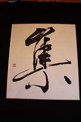 アキラさんの作品。ご結婚されたご友人への大きな一枚。「人生は旅のようなもの」 第一回目「踊るように自由に書を書こう」のワークショップ。たっくさんの芸術作品が生まれました。 書の基本も教えていただき・・・ 左が最初の好きにお書きいただいた一文字。右が先生のレクチャー後アートに仕上げた色紙の完成作品。たった1時間ちょっとで全然違う個性。 みんな学生以来に筆を持つって感じ?最初は棒線をたくさん書いて力の抜き方の練習。。。 書の字体もいろいろ。先生の大きな作品。まさにアートですね。 これを書くには、こんな風に・・・身体全体を使って踊るよう書くんですね。 個性、色々。皆素敵。この掛け軸は差し替えが出来る優れもの。めっちゃ良いです。 「これはやられた・・・マジで・・・」と先生をうならせた今日一番のアーティストは・・・5歳の光希くん。希望の希。他にも良い字をたくさん書いていて先生がばしばし写真とってました。 (け・む・し、とか、お・で・ん、とか、一気に30枚も。笑) 書がこんなに面白いものだったとは!!!と全員同じご感想。 アンジェラをイメージして私も3枚だけ書いてみました。男らしい字(笑)。。。 先生は自由に書を楽しむ事を一番に教えてくださるので月に1回くらいはこんな素敵な時間を持つのもいいかもね。 書は今若い人の間で流行っているそう。第3週の日曜日に毎月行います。来月は3/15(日)です。 明日は「自分磨き塾 2回目」。 2/23(月)の「作家さんのお茶会」ご参加者はメッセージくださいね♪