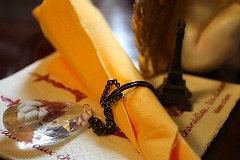 これは「おしゃれ探検」で作る簡単ナプキンリング。意外なもののヴィンテージのリングと、キラキラの組み合わせ。&意外な使い方もレクチャー。作った後、早速これを使いたいがために(笑)簡単軽食も作って、ピクニック気分でいただきます♪明日のワークショップ提出用に撮った写真ですが・・・あまりの下手さに愕然・・・(笑えない・・) 「パニエさんの写真のスタイリングワーク」。 「素敵な写真を撮られるパニエさんに是非レクチャーいただきたい!」というご希望が、作家さんのお茶会で出ましたのでさっそく実現したワークショップ。 パニエさんに教えていただけるのは4ヶ月に1回で次回は6月。今回はお試しワークショプです。 で、参加者10名はそれぞれスタイリングした写真を数枚持ってくる予定です。何かの時用の為に貯めてたへそくりで、カメラを買っちゃったはいいけれど。実はまだ取扱説明書もろくに読んでいない私。一眼レフも初めてなのです・・・ で、撮ったものの・・・難しいし、奥が深いですね、写真。こりゃ勉強せな、あかん・・・