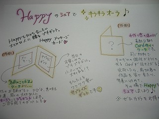 3/22(日)のイベント、「きれい塾」で担当させていただくワークショップ。ライフスタイル提案って、いったい何すんねん・・・ときっと思われている、その内容ですが。。。 モノも作るんですけど私が伝えたいのは、モノを越えた 「ココロ」 の部分なのです。 これって本当に伝えるの難しい・・・ 今までは「モノ」に添えて「ココロ」だったのですが、今度は「ココロ」に添えて、「モノ」を提案したい・・・。 サロンのワークショップもご参加くださって初めて「なるほどね!」って、ご理解いただけるんですけど、なにせやってる私でさえうまく言葉では伝えずらいもの・・・(とほほ) でも「アンジェラさんでやっていること~、理解できるわ!お友達に広めたいわ~!でも、どう伝えたらいいか分からないからとりあえず、ブログ見て!って友人に勧めてます」 とありがたいお言葉もいただき。ほんと伝えずらいですよね(しみじみ・・・)。形がないことを理解してもらうって・・・。しかもお仕事として。 何を言われても、地道にこつこつ・・・しかないですね。(実は6月に偶然見ていただいたインナーチャイルドカードであなたがやろうとしていることはハッピーエンドなんだけれど早すぎて理解されない。でも信じて進みなさいと出ていて、まさかそのときはまだ関西にいると思わなかったし意味がまったく分からなかったのですが、今の展開で納得・・・。ほんまに当たりますね、あのカードは・・・) ワークショップも実際に始まってようやく写真などで様子を説明出来るようになり少しはイメージが分かるようになったかなあ・・・。(でも自分のWSの写真取れてないので、一番怪しいワークショプかも。 がくっ・・・・・) きれい塾で作る「モノ」。サンプル作って写真アップしようかな、とも思いましたが、全部乗せちゃうと当日つまんないので、アバウトなイラストにしてみました。 ハッピーを周りの大切な人とシェアすることでキラキラオーラ全開♪ということで、ちょっとした気持ちなどを伝えるメッセージカードを作ります。 でもこれ、普通のカードじゃないのです。 今回のワークは、ことだま師・丸田みどりさんの「名前のことだまワークショップ」とカップリングです。 ことだまのワークでは名前は「生まれてはじめて受取るギフト」。ということで、参加者ご自身の名前のメッセージの意味を知る、素敵なワークショップ。 言の葉といいますが、すべての言葉には響きにも意味があり、名前にはなんと使命が隠されているのですって。 それは周りにかかわる人にも、影響があり、また自分の周りの人の名前も、自分にとっての意味があるそうです。例えば、ここ最近知り合った人の名前から、今自分がどういう状態か、が分かっちゃう。 ちなみにわたしは、アンジェラあさみと両方とも、お店も名前も 「あ」。「ア」の意味は「新しい展開、希望の始まり、ひらめき」だそうです。 だから アンジェラ=場所 の使命は「新しい展開」ということ。そして あさみ=人の名 の役割も同じなのですね。 なるほどね。最近私と出会ったり、アンジェラと出会われた方は今「新しい展開に来ていますよ」という時期だとそういうことですね。 なので、「私の名前はこんな使命があるのであなたとって、私の役割は○○ですよ♪」というコトバという「コト」のギフトをカードという「モノ」に起こして、ハッピーをシェアしたいなと。ようは、誰かにいただいたギフトを、今度は誰かにあげる、という2つのワークショップなのだけど対になっている、1つのワークにしようという試み。 ハッピーを大切な人に贈って分かち合おう♪ご自身の名前の持つ役割を、伝えることがプレゼントに・・ここにリアルなギフトをくっつけます。 外側は、見た瞬間ハッピーになっちゃうような素敵なカードに仕上げます。 たった小さなカードなのですが、サプライズもちりばめた、紙とキットであっという間に素敵なカードに組み立てられるしかもちょっとした時間で作れてしまう、ハッピーを凝縮したギフトです。 カードなのに、生き物を入れてしまう予定です。(マジシャンか!?) でもぺっちゃんこ(ひものか?) 詳細は当日ご参加の方のみのサプライズです。 そして、キットとはいえ、皆さんのお好きにレイアウトなど作りこんでいただくので参加者分、個性あふれるカードのアートが出来あがるわけです。 なので、全員分をみんなで眺めて一期一会のアートショー。カメラに収めたら、これまた場所をとらない記念のブックになりますね。そんな参加者全員で、ハッピーを分かち合う♪という、そんな小さいけど大きなハッピーも企んでいます。