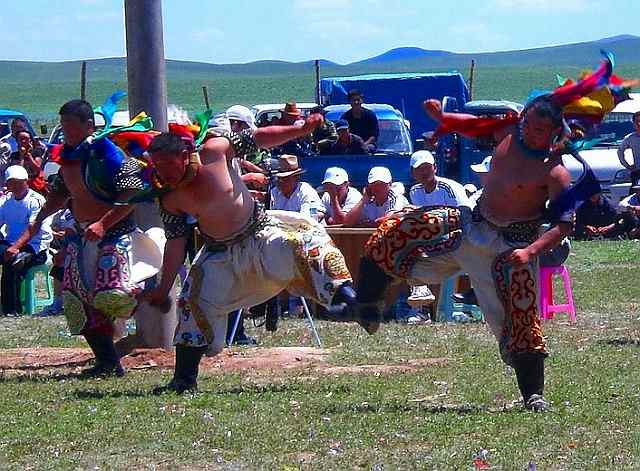 今日は”ハイラル~~ラサ・・・気まぐれ旅日記・・・(^@^)です。内モンゴル日記・・・・・(^@^)アルコルチン・・・・(3)・・・ナーダム・・・この時期の内モンゴルは各町ごとに小規模なナーダムが毎週開催されているそうだ。この日はコントのナーダム翌日は天山のナーダムが新設なった専門学校のグランドを利用して開催されると言うことだったこの日は相撲のみ・・・参加総数は子供も合わせて200人ほど・・・・入場の度こういう風景が繰り返されるこの画は鷹を模しているそうだがその後かわいいお辞儀をする姿は勇壮と言う風ではなくモンゴル族驕り高ぶらない謙虚な姿勢が意外とかわいい。しかし一旦試合が始まると顔が一変するまさに真剣勝負である相手に向かうとき、踏ん張った足元に土ぼこりがたつで・・・・この日の優勝賞金は10000元・・・・所謂プロがいて、シーズン中に1年分の所得を稼ぎ出してしまうそうだ準優勝はバイク・・・・1万元より安いのはちょっと意外だったが其処はそれ・・・中国のこと・・・5000元程度だそうだ表彰式が終われば・・・・勿論宴会(^@^)これが無くてはナーダムではない(^@^)で・・・捌いたばっかりの羊・・・今年の羊はすでに油が乗っている秋にはもっと美味しくなることだろうこの日宴席に同席した綺麗どころ(~‘~)この3人が同級生とは・・・・あまりにも顔に差が有り過ぎである私の隣には同級生の男が3人居たが少なくとも私より・・・・年上に見える昼の日中から・・・白酒が空く・・・・おまけにビールも・・・・調子よく飲む私を心配して「あまり無理をしないでください」(^@^)しかし・・・すんなりと入る(^@^)宴会が終えたのは3時半・・・・外へ出ると隣のパオは解体中だったさらに、比較的短く終えたと思ったら甘かった・・・・・(^@^)ここは軽く終え次は天山に帰って6時から・・・(^@^)軽くといっても・・・飲んだのは白酒・・・・おまけにビールそんなに軽くは無かったが・・・(^@^)それでも絶好調だった(~‘~)この二人が宴会の世話をしてくれたが日本人を見るのは初めてとか・・・・友人が「中国語が話せる」と言うと気さくに話し掛けてくれ何かと気を使ってくれたがなんとも愛嬌のある子達だった(~‘~)そんなこんなで取敢えず天山へ・・・ホテルへ帰りまずシャワー・・・・ちょっと横になりお茶を飲んで一休みである。こういうときのスーテーチャはかなり有効である特に本番前のお茶は・・・(^@^)この続きはまた明日「張 学友」「祝福」http://sing.9kf.net/162831.htmこちらは張 国栄(レスリー・チャン)の95年の映画「夜半歌声」甘く切ない主題曲。是非こちらでお試しをhttp://www.maop.cn/p/2/31557/http://vvya.com/play_list/46594.htmhttp://www.xxby.com/music/list/1333.htm無料のインターネットテレビGYAOALA中国さんよりリンクの申し入れがありましたので快くお受けいたしました。ご覧になってください。