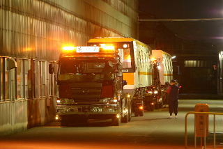 これで80系は12本目・・80系は陸送は5回目ですが・・いよいよ出発です搬入口に着き、90度曲がります。妻面はそう簡単に見れないでしょう・・。