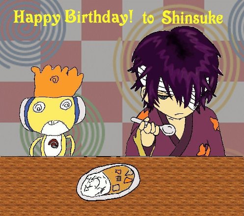 ハッΣ(゚ロ゚〃)何もしないうちに休暇が終わっていく!щ(゚ロ゚щ)なロータスです。(゚ロ゚;)エェッ!? マジでもう5日過ぎてんじゃん!すっかりマダオな生活に慣れてしまってますが…ナニか?大好きな「サラリーマンNEO」を差し置いてまでして、なぜか毎週見ている「花咲ける青少年」w先週と今週はスペシャルで、声優さん達のトークショーでした。今年に入ってから、かなりメロキュンな森川智之氏!きっかけは「ガラスの仮面」の真澄様。そして、「戦国BASARA」の竜の右目こと、小十郎!「花咲ける青少年」では立人と、萌ハンサム目白押しw理想的なカッコイイ大人の出来る男声ですよねお姿を拝見したのは初めて。声優さんって見ないもの~。頭の回転が速くて面白い方でした(≧▽≦) 楽しい☆ ☆;+;。・゚・。;+;☆;+;。・゚・。;+;今月は言わずと知れた、高杉さん強化月間!仲良くして下さるはるはるadagio様から素敵絵を頂戴しました。 中の人繋がりで、キュートな一枚ですよん。か~わ~うぃ~うぃ~♪(≧▽≦)なんと2号君との合作!スゴイ!仲良し親子で羨ましいですっ。('▽'*)ニパッはるはる様、2号君、ありがとうございました クーックックク…お持ち帰りはご遠慮願うぜぇ~~~! ・・・御礼にちょっとした妄想を☆2号君があまりに萌え~なセリフを言ってたので、サクっと使わせて頂きました。(゚▽^*)テヘ♪ 「クーックックック、お前のために “お誕生日スペシャルカレー”を作ってやったぜぇ~。」「・・・毒か何か入れただろ。」「毒なんて入っちゃいねーよ。なぁ~に、ちょっと口癖が変わるくらいだ。クックック」「・・・口癖?」「の〇ピー語に...ふごがっ!!」 (晋助に殴られ、眼鏡を割られたクルル)「時期的にそれは一番ヤバイだろ。」「ハイ嘘ですぅ。何も入ってませんのでお食べください。」「・・・やめとく。」「オレのカレーは美味いぜぇ?!サブローの奴も喜んで食ってたぜ。あ、さては… クックック~」「・・・カレーは食べない。」「ぢゃなくて、人参が食べれないんだろ?お前。 ちゃんと残さず全部食わないとお仕置きだぜぇ~!!」「・・・お仕置きだと?」 (目が光る晋助様)「カレーを全部食わないとその椅子からいつまでたっても立ち上がれないぜぇ。 電流も流レルよ。クックックック~、ポチっとぉ~!」「あ!てめェ。何のボタンを押しやがったっ?!」 ・・・この後、晋助様がどうなったのかは謎ですw好き嫌いはいけませんよね。クックックー!あ、クルちゃん。晋助様は猫舌だから、ちゃんとふーふーしたげてね(゚▽^*)テヘ♪ ポチっとぉぉぉぉ~~~!ぜひぜひポチッとな!めっさ喜びます。(゚▽^*)テヘ♪