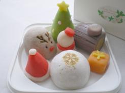 毎年恒例のクリスマス和菓子に今年はこんな詰め合わせを用意しました。練りきりのツリーを立体的にしたかったのと大きさの違うお菓子を組み合わせたかったので和菓子の箱ではなくケーキ用の箱とトレーを使ってアレンジしてみました。「見た目に楽しくて、食べておいしい」を忘れずに少し私の遊び心もいれて作りました。練りきり製のツリー、赤鼻のトナカイ、ブッシュドノエル、雪の華の薯蕷饅頭。そして小さな練りきり製の雪だるま、サンタの帽子、プレゼントボックス。手間はかかりますが和菓子を楽しんでもらえればと思います。店頭でのみの販売です。只今予約承り中です。(1260円)