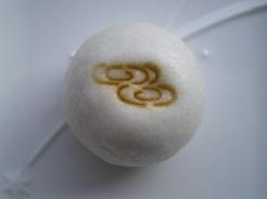 今日の和菓子は「重ね水」。薯蕷饅頭です。真っ白な薯蕷饅頭に重ね水の焼き印を押してあります。焼き印の線もシンプルですっきり仕上がります。