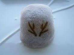 今日の和菓子は「鹿の子餅」。小豆を練りこんだ餅生地で丹波大納言の粒餡を包み鹿の角の焼き印で仕上げてあります。餅菓子のおいしい季節になりました。