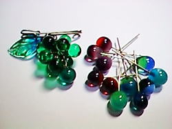 だいたい一つの玉が6~8ミリの大きさです、左はぶどう玉の応用のしずく玉です。