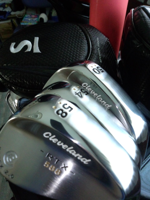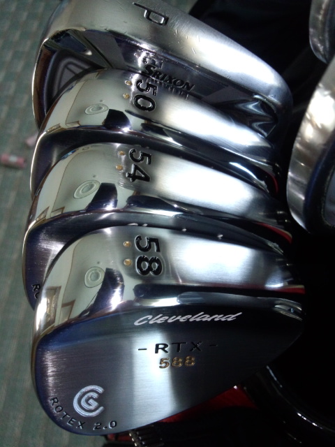 クラブセッティング変えました~ スコアメイキングは120Yard以内が肝と言うことで・・・・・・・・・・ ウェッジを4本体制に 購入したのが Cleveland 588 RTX 2.0 ツアーサテン ウエッジ 今まではセット物のAW,SWしか使ったことないので初ウェッジセッティング 今まではAW51度、SW56度を使用していましたが・・・・・・・・・・・ 50度、54度、58度にしたことによって・・・・・・・・・・・・ もっとアプローチの精度が上がることを祈るばかりです 構えた感じも違和感なく、後は練習場で打つべし ほとんど使う事の無い3Iを抜いて・・・・・・・・・・・・ こんな感じで行きたいと思います
