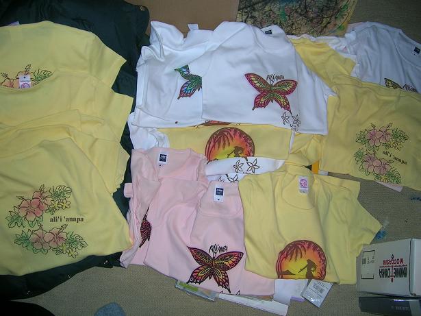 お久しぶりのTシャツ色つけ作業数は30枚くらいですかね、このTシャツは横浜の元町にあるハワイアンショップ アリィ アナパ というお店のオリジナルTシャツです。一応、絵は私が担当していて絵がプリントされたものにまた色付けをしています。一枚一枚ハンドペイントなので微妙に色合いが違ったり気分によって使う色がちがったりと完全プリント物よりは限定感が増すような気がします。こんな感じを求めている方!どうでしょうか?是非、元町に遊びに行く方がいらっしゃいましたら立ち寄ってみてください。