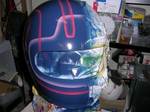 今日もフルフェイスペイントです。この前ブログでは半分のラメが終わった事を報告しましたが、この画像は残りの半分のペイント工程です。完成まだまだ遠くこれでもまだ下地の模様とでもいいましょうか、これから無数のラインを入れて半分は終わり・・・・・・・かな??手をかければかけるほど面白いものが出来るので私も完成が楽しみな1つです。