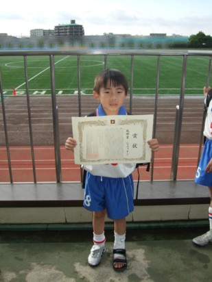 今日は朝から雨… でも陸上競技場は人工芝で雨天中止はないってことだったけど、雨で少し開始が遅くなったので1時間半遅れで出掛けました 足を大袈裟にびっこを引いて歩く息子に 『出来るのか~so?』 とコーチ。 『意地でもやる』 と試合前、コーチにテーピングを巻いてもらったsoでも結局、チーム足を引っ張ってしまうので今日の試合は2試合中1試合の前半しか出場はかなわず…でした 1試合終わった後でアイシングもしてスタンバったけど2試合目は出番なし… 出場させてもらえなかったことに、 『僕は出たかったけどコーチにダメって言われた~』 と涙ぐむsoそれなのにsoはその直後に友だちと追いかけっこして遊んでる始末… 動けるじゃないの…と怒りが沸々と沸き上がってくる母なのでした… ショックも説教も右から左にスルーのsoです チームの試合結果は4位の敢闘賞でした 次からもベスト4の常連さんになれるように頑張れ