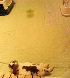 昨日の夜、花音ちゃんと楽しく遊んでた時のこと。。。花音ちゃんはひとしきり遊んだ後ゴキゲンで牧草を食べていたのですヽ( ´ー`)ノ牧草おいちぃね~ヾ(〃∇〃)ツ花音ちゃんの幸せそうな顔を見ながらにまにましてるパパ(〃ω〃) んがしかしっΣ(゜д゜;)とっても幸せな時間を引き裂く事件はその時におきたのです(≧⊥≦)「がっっしゃ~~~ん!!」と外からすごい音が聞こえてきたのです(((;゜Д゜)))その瞬間!花音ちゃんはナデナデしてるパパのウデを振り払い猛烈なダッシュでおうちに逃げ込みましたΣ(O_O;)Shock!!花音ちゃんってばパパが「やさしいパパ」の仮面を脱ぎ捨てて「悪魔のパパ」になったとでも思ったみたいで隅っこに隠れて出てきてくれないんですよ・゜・(ノД`)・゜・「花音ちゃ~んパパがいじめたんじゃないんだよぉ~信じてくだしゃ~い」懇願するパパ(;´Д`)ノ しかし花音ちゃんってば「パパ怖いでしゅ⌒(=`ェ´=;)⌒」って感じでず~っと警戒しっぱなしなんですil||li(っω`-。)il||li 結局その後時間がたって少しづつパパにちかづいてきたりしてくれたんだけどしばらくの間ギクシャクした花音ちゃんとパパなのでした(゚ω゚;A)今日の写真はパパから逃げてキャリーの中に避難してる花音ちゃんです(;×_×)「パパ大嫌いでしゅヽ(`ω´*)ノ」ってのがにじみでてます(^◇^;)ついでに↓の写真は昨日洗い立てのマットにお漏らしをして知らんふりしてる花音ちゃんでし(^◇^;)そしてまたまたついでに牧草爆食いの花音ちゃんでし,*"(⌒▽⌒*)"*,