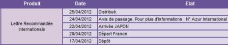 こちらはフランスからの分。4/16に買ったものは結局3日連続でバラバラと届いた。アメリカ、フランス、ドイツの順で着くと思ったのにな~4/16注文とはいえ、毎週火曜日の発送と決まっているので発送は4/17。fleurはほ~んとにそっけないショップで発送通知も無かったけど一応書留。きっと不着時は言えば調べてくれるのでしょう。la posteの追跡はスペインなんかと同じ感じ日本との連動は一方通行みたいで日本郵便のサイトでは日本到着からのみの追跡。4月22日 10:57 国際交換支店に到着 成田国際空港支店4月23日 9:00 通関手続中 成田国際空港支店4月23日 11:04 国際交換支店から発送 成田国際空港支店4月24日 3:46 到着 4月24日 ご不在のため持ち戻り