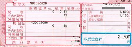 現地6/17発のが届いた。今回かなり早いだけど、相変わらず関税計算分からないわ…今回は衣類の他に雑貨や化粧品を買ったんだよね。特に雑貨はDisney Storeで時計、おもちゃ、ゴーグル…とにかくいろいろ買ったから種類多し。1個目のHSコード392690029は「プラスチック製品」の「その他」の「その他」。でも、関税率表を見るとこの項目は税率が書かかれていない。ここでは3.9%と4%の2行あるのは同じ分類だけど税率が違うものがあるってこと?ならなんでHSコードが分かれないんだろう。しかもそれぞれ税額は0円…なぞ2個目の420292000は「バッグ」の「ポケット又はハンドバッグに通常入れて携帯する製品」の「外面がプラスチックシート製又は紡織用繊維製のもの」は$3のエコバッグと$40のキャンバス地ポシェットのことだな。残りの2597円は衣類やコスメの関税+消費税ということなのかしら??まあそうじゃないとトータル支払い額の関税が1600円の説明が付かないし。相変わらず記載は分からないけれどとりあえず合計額はいつもより納得の関税。(いつもはコスメなどの細かいのが衣類といっしょくたに計算されているような気がする。Fifty Oneでもコスメもまとめて10%みたいな計算になるんだよね)なにはともあれゴムのビーチサンダルが革扱いになってなくて良かった…代行業者が作ってくれるインボイスってどんなか分からないからそれが一番の心配だったんだよね。そういう時はさすがにヤマトに電話して修正申告してもらうかな。