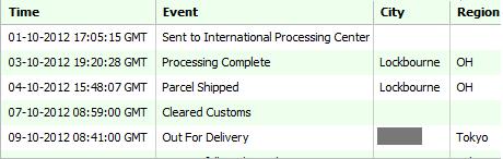 バックオーダーの無かった今回は速かった。日本時間で10/13の14時頃注文で23:30過ぎ発送メール。で、本日配達。消印も10/13。また使うかな。