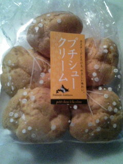 この前の北海道物産展で買ったものです。梅屋 プチシュークリームその名のとおり、かなり小さめのシュークリーム。袋に5個入り、¥399。ミルクと卵をたっぷり、というように、白っぽいカスタードクリームは、とろけるように入っています。実は、シュークリームがあまり得意ではないムスメたち。でもこれは、大きさも丁度イイお手ごろサイズで、美味しかったようです。