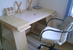週続けてIKEAに通ったのは、もちろん自分が見に行きたかったのもありますが、、、、IKEAが出来るまで待ってっっ・・・・・と4年生になるこの春まで、勉強机の購入を待たせた紅実の勉強机購入のため。その間紅実の勉強はリビングのテーブルとか、ダイニングのテーブルなどで勉強していました。まー、正直低学年の間は、自分で考えるだのというよりは、私の目の前でやってるほうが子供も安心だったようで特に支障はありませんでしたね。敷いて言えば、プリントとか勉強道具の置き場に困ったくらいでそれはそれ様の小さい棚を買ってあったので、まあなんとか。一番の問題は・・・・百々椛でしたね~特にこの1年くらいは、紅実が宿題を始めると、必ずその隣に何か持っていっては、目の前であーでもない、こーでもない、と話し始めるため、紅実が集中できないっと言い出したため。で~、土曜日は、下見したオフィス家具売り場に直行。オフィス家具の、脚と天板を紅実の勉強用机としたわけ。 とにかく、組み立てたところ子供部屋もそのために、かなり整理しています。ここは、カラーボックスを組み合わせて、本や絵本、おもちゃなどを置いてあったところなので、それを全て撤去、場所を全部ずらして置き換えました。棚付きの脚2組と天板で、合わせて¥15000弱。学習机、と呼ばれるものを買う、何分のイチかの資金で済み、本人がその場で気に入った椅子も購入してほぼ¥30000。棚付きの脚、というのがミソで、結構収納できますね~ で、身の回りの勉強道具などを一通り整理してみたところ。今現在は、まだ参考書とか問題集などがほとんどないため、袖の引き出しも要らないし、収納は足りてます。学期末、学年末などで書道や絵の具の道具を持ち帰るとちょっとパンパンになるかな?それでも、足元の棚に置くことが出来るし、今まで使っていた観音開きの小さい棚(ベッドを買ったらその枕元などにおいて使おうと思って、購入してあったもの)が椅子の背中側にあるので、その上なども使うことが可能。・・・・案外収納、あるじゃんっここまで揃った写真を周りのママ友達に見せたら、なかなか好評ですいろんな子供部屋関連の本とかを、ここ数年いろいろ購入したりして、紅実本人より私が、こういうの考えるの好きで・・・・・少し前にも、子供部屋のインタリア本を新たに入手してあれこれ考えていたばかりなのだ・・・ やはりどの本も、IKEAの家具や雑貨を紹介しているモノが多いです。今回のこの机も、飽きが来ないし、自分でカスタマイズ可能だし、大きくなっても使いやすいし・・・・いや~、とりあえずじっくり待って、納得いくように選んで、、、、、・・・・・・よかった