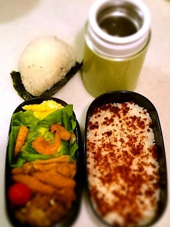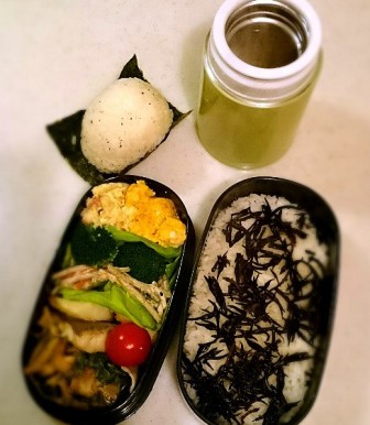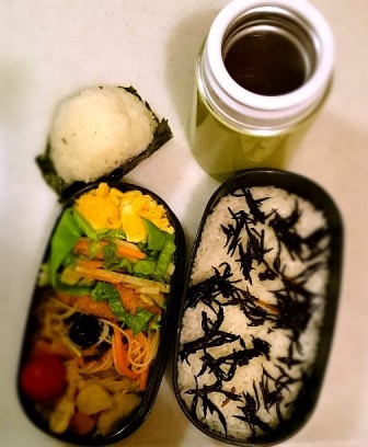 やばい、今日はとにかく眠い・・・寝るタイミング、起きるタイミングが悪かったんだろうな。うーーー、ツライ一日になりそう月曜弁当 おにぎりは、若菜とひじきの混ぜご飯。弁当本体は若菜とひじきご飯のおにぎり ネギと野菜のカップみそ汁のりたま+白米めかぶと鶏ひき肉の炒め煮(取り置き)トマトパスタ鶏もも入り(取り置き)ザンギ(取り置き)ラーメンサラダ(取り置き)ボイルブロッコリーとヤングコーンえびから揚げネギ卵焼きミニトマト鶏肉祭りじゃ~~