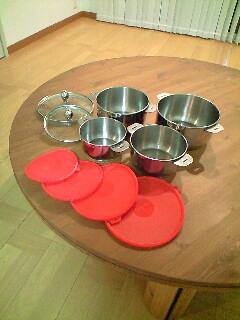 1年前の冬(ルクにはまる以前)に購入した、お鍋セットです。ちょうど、おなべを1つ駄目にしてしまい、いつも立ち寄るデパートで何気なくお鍋を見ていたら、目に留まったので購入しました。(大・中・小とあるので便利かもと思ったのです。)販売員のおばちゃんも熱心に説明してくれましたし・・・ 帰ってから相棒に正直に買ったことを伝えました。 「これ、買ったよ。 お鍋一つ駄目にしたし、ちょうど大・中・小と欲しかったしね。」「いくらしたん?」「いくらやと思う?」「○○円」「まあ、そんなとこかな。」実は、相棒の言った金額のX倍はしました。うちの相棒は、お鍋に当時はあまり興味がなく、恐らく、彼の中でお鍋ならこれくらいが妥当かなあという値段を言ったんだと思います。昨年末、台所で料理をしていた時に、もう時効かなあと思ったので、「このお鍋、ほんまはいくらやったと思う?」「えっ、○○円じゃないん?」「実は、○○円やってん。」「えっ?」蹴りをいただきました。(笑)(あっ、冗談でですよ。念のため。)もう二度と、相棒には正直に値段を言うまいと決心した出来事です。その後、ルクにはまってからは、お出かけした時に、近くにルクを置いているお店があると、「必ず」と言っていいほど、行くようになりました。で、相棒に、「ルクはね~・・・、熱伝導がね~・・・。」と、説明を(と言っても、私もそれほど知識があるわけではないんですが・・・)していました。最後は、「ねっ、かわいいでしょ?かわいいでしょ?」(↑必ず、最後に「かわいい」を連発してしまう私。もっとボギャブラリーを勉強します。)そんな涙ぐましい努力の結果(?)、相棒もルクを気に入るようになりました。我が家に嫁いだ、記念すべき初ルク鍋です。ふっふっふっ、もう少しで、完全に私色に染まるなぁ。只今、イッタラを説明している最中。(と言っても、こちらもやはり「かわいいでしょっ。かわいいでしょっ。シンプルでいいでしょっ。」しか、言っていないのですが・・・。はいっ、もっと言葉を勉強します。)相棒は、イッタラのことを、「どったらこったら」としか言わないので(覚える気なし)、今の目標は、「イッタラ」の名前を覚えてもらうことです。(レベル低っ)ルク同様、お店にイッタラが置いてあれば、必ず連れて行ってます。(わたくしお得意の、「ちょっと見に行かない?」の台詞で、連れて行きます。)最後は、イッタラ好きにさせます。(イッタラ好きに、させてみせよう、ほととぎす ← あっ、違うか)おまけ、あれほど「ブログを見ないで(見るな)。」と、お願い(?)したのに、やっぱり見ています。今日は、駄目だしされてしまいました。調子狂っちゃうから、困るんだけどなあ。こんな時は、さくらの寝相で、癒されます。(↑誰に似たんだろう?この寝相の悪さ。←(「お前だよ」という相棒の声がどこからともなく聞こえてきたような・・・)