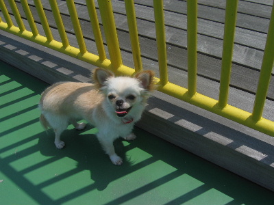 丁度、真昼間に着いたので。。。暑くて~大~変!まおちゃんは日陰に避難です。^_^;