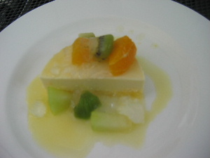 クリームチーズケーキ。上にフルーツとジュレが乗っていてさっぱりしてて、おいしーの♪