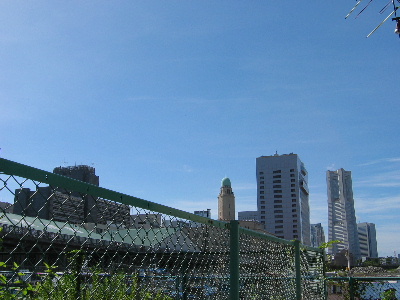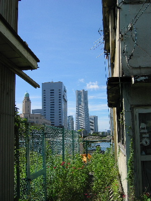 お店とお店の間から撮って見た。ランドマークタワー。