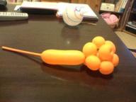 昨日土曜日はパパの英会話スクールで夏祭り。私は、家に遊びに来てくれたお友達(子連れ)を連れて夏祭りへ。生徒以外の子どもたちやその親も来ていて、夏祭りは大盛況だった。すごーい。教室の中でカキ氷やクレープ、カレーライスを作って売っていたり、フリマをしている家族がいたり、ヨーヨーや金魚すくい、スーパーボールすくいがあったり。友達の子どもたちは大喜びでその夏祭りを満喫していたので良かったo('(エ)'o)(o'(エ)')o パパはまだそのまま教室に残り、私とさくぼうだけ先に帰った。ご飯作るの面倒だなぁと思ってたらパパから電話。「一杯飲んできていい?(もちろん日本語)」私「いいよ」→でもほんとはちょっと寂しい。結局帰ってきたのは12時近かった。電話があったのは7時ごろ。「一杯飲んでくる」を鵜呑みにした私がちょっとばかだった。そうそう、夏祭りのお土産としてもって帰ってきたものの中に、風船で作ったこれを発見。なんの疑いもなく「あ、ポンデライオンだ可愛い!」と思った私。さくぼうにも、「ボクの名前はポンデライオン!よろしくね!」と紹介していたら、パパが、「それ、花だよ」「へ?うそぉ!私さくぼうにポンデライオンって紹介したよ!」「じゃ、さくぼうは花とポンデライオンが一緒だと思ってるだろうね、“Look! Daddy! It’s a pon-de-lion flower!”・・・(さくぼうになったつもりで言ってる)」人気blogランキングへ