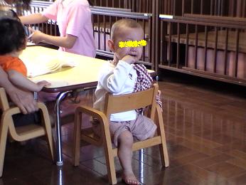 最近寝坊ばかりしている私。朝ごはん、着替え、検温、連絡帳記入、保育園へ連れていく・・という一連のお仕事はビーちゃん任せ。そのせいか昨夜はさくぼう、 ダダ命!! って感じで、夜ご飯食べさせるのもビーちゃんのひざの上でじゃないとダメだったり。それが嬉しかったらしく(本当に分かりやすい人) 、今朝珍しく私が早起きしてさくぼうに朝食を食べさせていると、 「マミーが食べさせてくれてるねぇ。いっつもそれダダの仕事なのにねぇ」 (英語で言っていた)それだけでなく、なんだか忘れちゃったけど、 「朝はいつもさくぼうは○○○。僕が食べさせるときは△△△」 まるで一日のさくぼうの世話を自分ひとりでこなしているかのような話しっぷり。・・・ていうか~。お昼過ぎから夜寝かし付けるまでを毎日こなしているのは私なんですけどぉ。ブツブツ・・・ビーちゃん、私が体調悪い間の、ほんの短い期間マミー代わりをしてくれてるだけじゃんよー。悶々・・・だけど、進んで家事でもなんでもやってくれて頼もしいビーちゃん。正直言って、かなり助かってます(* ̄Oノ ̄*)オホホ♪☆*。。。*☆*。。。*☆*。。。*☆*。。。*☆*。。。*☆なぜ私が早起きしたかというと、今日はあるコミュニティ(スキッピーさんパクリ)の集まりがあったからですこないだ知り合ったKちゃんからさそわれて言ったんだけど、偶然それがスキッピーさんにもつながっていて嬉しいサプライズ電車を乗り継いで行ったけど、Kちゃんは相変わらず話し上手で楽しいし、全然疲れない移動だったよ~途中で一緒になったEちゃんもニコニコ笑顔の乙葉似の気さくな方だったし。みんなが集まった場所も、これまたゆっくりランチできて最高さくぼうにはおにぎりもって行ってたのに半分以上落とされてしまった( ̄□ ̄;)!!さく~ッ( #` ¬´#) ノコラ!私の頼んだ和風ハンバーグをちょこちょこと食べておりました。(もうどうなっても良いって感じの、離乳食の完了期)ランチの後は、プレイルーム?に行って子供たちは遊び、ママたちはおしゃべりこれがまた、国際結婚ならではの話が出来たり、聞けたりととっても楽しかった。ハーフちゃんたちもみんな可愛かったよー!びぇーーーん美香さんが、引っ張るのぉ~!!登る。登る。よちよち、Nちゃん、マミー(さくぼう)が写真とったげるやっと集まったベビー達・・。でも全員じゃないし(笑)。☆*。。。*☆*。。。*☆*。。。*☆*。。。*☆*。。。*☆帰ってからウトウトしだしたさく。慌ててご飯作って、食べさせてシャワー浴びて、のんびり。最近ブームのテーブル登り。登ったは良いけど、降りれないので号泣だって、ここ、たかいじゃん!!コワいよぉ。蓮4044