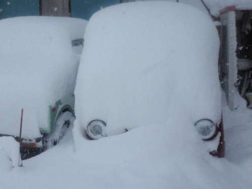 めずらしくベタ雪になりました。雪かきは重くて大変ですが、雪だるまを作るのに最適てす。