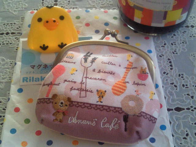 こどもっちからのプレゼント。やっぱりキイロイトリは外せないらしいです。ありがと。がま口には、何を入れようかな。会議で夜遅く帰ってきたダンナさんは、マスターが同じ誕生日な居酒屋に行ったため私の誕生日に気づかされ、帰りがけに知り合いのコンビニで『ケーキは無いか?』と聞いたらしいです。幾らコンビニエンスなコンビニでも・・・。なので、当日解禁になったワインを買ってきた模様です。。