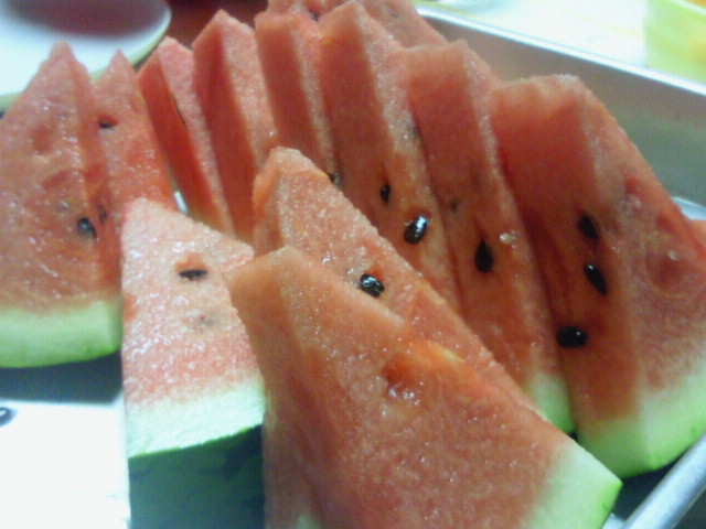 メロンだスイカだと、毎日のように戴いてます。ドア TO ドア ならぬ、畑 TO 台所 なので糖度半端ないです。完熟して蜜の部分なんですかね。ちょっと透明になってます。本屋もレコ屋もない子供の進学も心配な田舎だけど、おいしいモノを食べて元気にいこ。