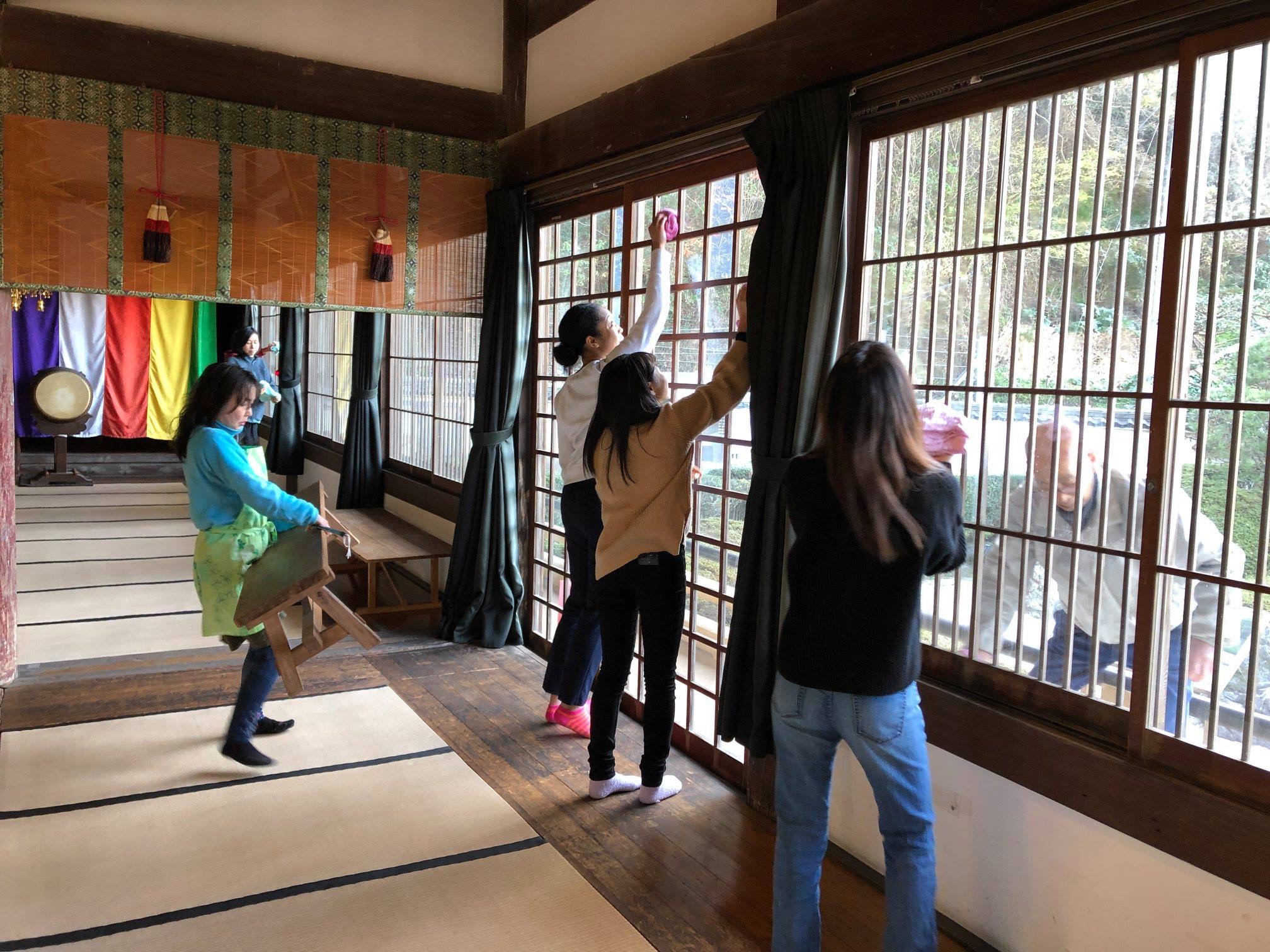 光明寺の大殿の畳拭きや窓拭き、畳の雑巾がけや
