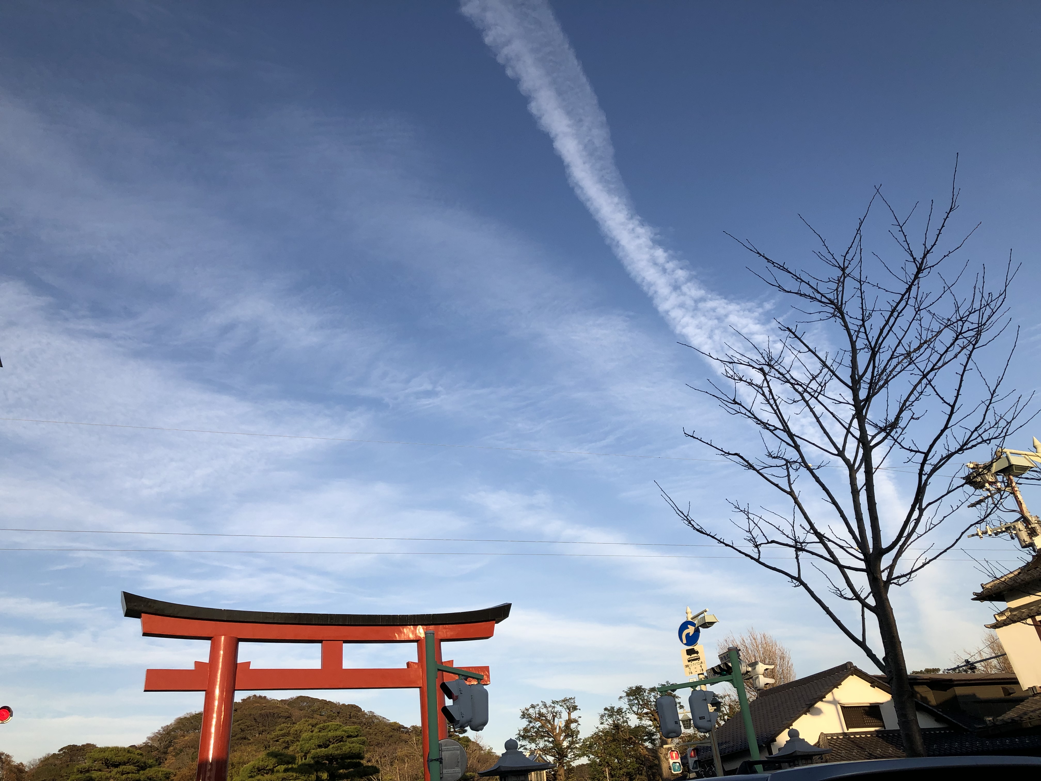 自宅帰る途中で鶴岡八幡宮の赤い鳥居