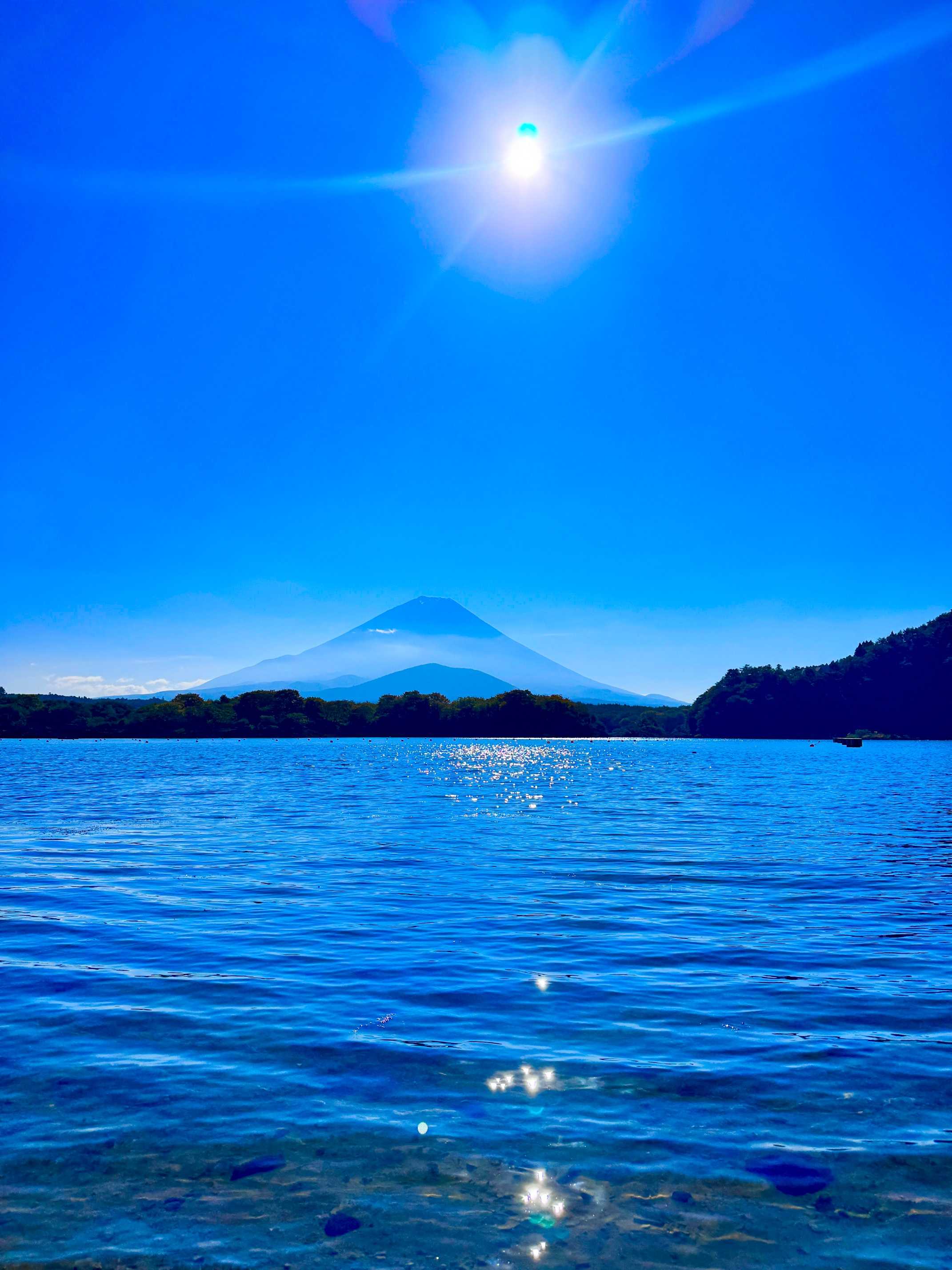湖面には雲ひとつない富士がまっすぐに映り込んでいました。