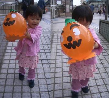 今日のスクールでの工作です。これは簡単でいいなぁと思っちゃいました。オレンジの風船を買ってきて、膨らまして。色紙でパーツを作って、のりでつけるだけ。ちょうどスクールに通って一年がたって。ものすごい成長にびっくりしてます。この工作もちゃんと目や口の位置がきちんとしてるし。やっぱり週2回、工作をやっていると上手になるのねーって。本当はウチでもやってあげたいけど、ママが工作はへたくそなのよー。風船大好き娘♪