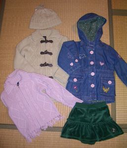 久しぶりにGAPに寄り道。アタシの服を買う予定が、、、娘のものに変更になっちゃった。セールが始まったばかりで、95や100という娘のサイズが残ってるんだもん。ジャケット類は全部1400円。帽子とスカートは600円。こういう値段だと嬉しいんだよねー。アミアミの白のジャケットは、トラッドを経験してるアタシ達夫婦のお気に入り。パパちゃんは、同じ形でメンズのXXLは無いのか~っていうくらい。GAPはオンラインで買えないから、日本でXXLを入手するのは不可能。とほほだわ~。デニムのジャケットはスクールや公園用にいいかなあと。緑のスカートは前にセラフで買ったこげ茶のセットとあわせたらかわいい。このジャケットもお店にあったんだけど、ちょぴっと体操服チック。なので、買うのはやめてしまいました。今気になってるのは、お店で現物を見てきたけど、ちょっとだけ上品でかわいいのよ。特に、ジャケットに惹かれてしまったわ。普段着でもちょっとだけお行儀いい感じにしたいなぁっていうときに大活躍だと思う。デニムの上に羽織ってもいいしなぁ。。。買っちゃおうかな、悩んでます。買い物したばかりなのにねー。