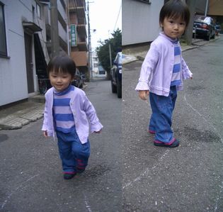 どうしても欲しくなってしまった洋服があるので、今日はお買い物へ。涼しくなってきたので、買っていた洋服も出動。このフーディがやっぱりお気に入り。サイズが大きめなので、真冬でもトレーナーの上にも着れそうだし。最近はほとんどベビーカーも使わない。とにかく歩くのが大好き。そして、電車に乗るのも大好き。お散歩もダイナミックになっています。お買い物も一緒にできるようになったし。これが女の子を持つ楽しみなのかしら。今日のお買い物はコレ。を買ってきました。パンツの形がまたきれい。お尻周りがダボつかないで、きれいなストレート。足が長く見えます。ベストは、ちょっとニュアンスを変えるのに大活躍しそう。タートルも、値段を考えればコストパフォーマンスがいい~。で、ウチにあるものでコーディネートしてみました。途中で飽きてきたのか、帽子を踏みつけてご機嫌です。とほほ。お店で見ていて、かわいいー次回買おうと思ったのが、裾のフリルが着るとキレイにでるのよー。親子でおそろいができるプルオーバー。子供用は裾のところが2枚仕立てになっていて、膨らんでかわいい♪おそろいってのもかわいいよ。楽天内のセール品で、気になる~。