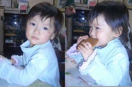 今日の夜はママ実家でママもパパも無しで一人でお泊り。前に預けたときはまだ乳児で、ミルクがあるから大丈夫かな~と思っていたら、ギャオギャオ泣いて。。。朝一番に、「はよ迎えに来い~」って電話があったなぁ。今回は、寝るまではゴキゲン。さあ、電気を消して寝ましょうとすると。。。「しくしくしく、、、ママ。。。」と。かぼそい声ですすり泣き、一歩手前。子どもなりにジジババに気を遣っている様子だったらしい。で、テレビをつけるとまたゴキゲン。大丈夫かなと消すと、再びしくしく。。。が、1時間くらいであきらめたのか寝に入ったらしい。で朝、「まま~~、どこ~~」でしくしくしく。再びちょっとだけしくしくしたら、二度寝して。そして爽快なお目覚めだったらしい。だいぶ大人になったんだなぁと思った。しかしママがお迎えに行くまで、「パイ」は一言も無かったらしい。無くても大丈夫だけど、ママが居たらとりあえずってノリかしら?預けてママとパパは夜のデート。といっても飲みに行っただけだけど。やっぱり話題は子どもの話がメイン。我が家では主役なのね~。お昼をママと一緒に食べて、じーじちゃんが車で送ってくれた。お迎えに行ったときにパチリ。ちょっとだけ目がはれぼったいかな?で、じーじーちゃんのお土産の「うさぎやのドラ焼き」ゴキゲンで噛み付いてます。困ったのが、なぜかじーじの車に乗ると気分が悪くなるようで。毎回ゲーゲーしてます。どうすれば治るかしら。アタシも中学生までは、乗り物酔いがひどかったなぁ。これも遺伝するものなのか、ナゾだわ~。