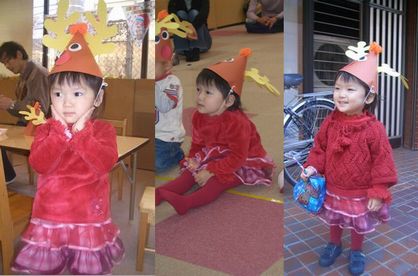 今日はスクールのクリスマスパーティ。 去年はスクールに入りたてで、 集中することもできずに放浪していたのが 今年はちゃんと参加していました。 ああ、成長したんだなぁ。 トナカイの帽子は、娘一人で作り上げていました。 金曜日もスクールだったのですが、 工作の時間も一人で全部できたらしい。 手先はどうやら器用なようです。先生達のパネルシアターも 座って集中してお話を聞いていました。去年はピアノに興味津々で、先生がピアノを弾いてるのを邪魔しに行っていたなぁ。少しはおねえちゃんになったみたいです。サンタさんにプレゼントをもらってゴキゲン。 LULUのHolidayのスカート、 着こなすのに難しいかなと思ったのだけど、 実際着るとすごくかわいい。 しかもいろいろなものにあわせられるので、 これはいいなぁと思った。 飽きない柄なんだろうなぁ。 親は、、、やっぱり疲れました。 でも、今年がこのスクールは最期になっちゃうから いろいろ思い出を作ってあげたいんだー。