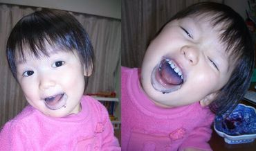 今日は親子ともども何もやる気の起きない一日。だらだらだらーと過ごしています。娘は珍しくお昼寝たっぷり。先日ホットカーペットを引っ張り出したので、その上でネコのように熟睡でした。で、おきだしてきて「あいすー、あいすーーー」とうるさいので、冷凍ブルーベリーをそのまま。すっぱいはずなのに、パクパク食べてる。で、ブルーベリーモンスターの出来上がり♪なのでお返事遅れてます。ごめんなさい。