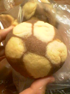 上の写真は、ウチのおばーちゃんから貰ったサッカーメロンパンです!!!