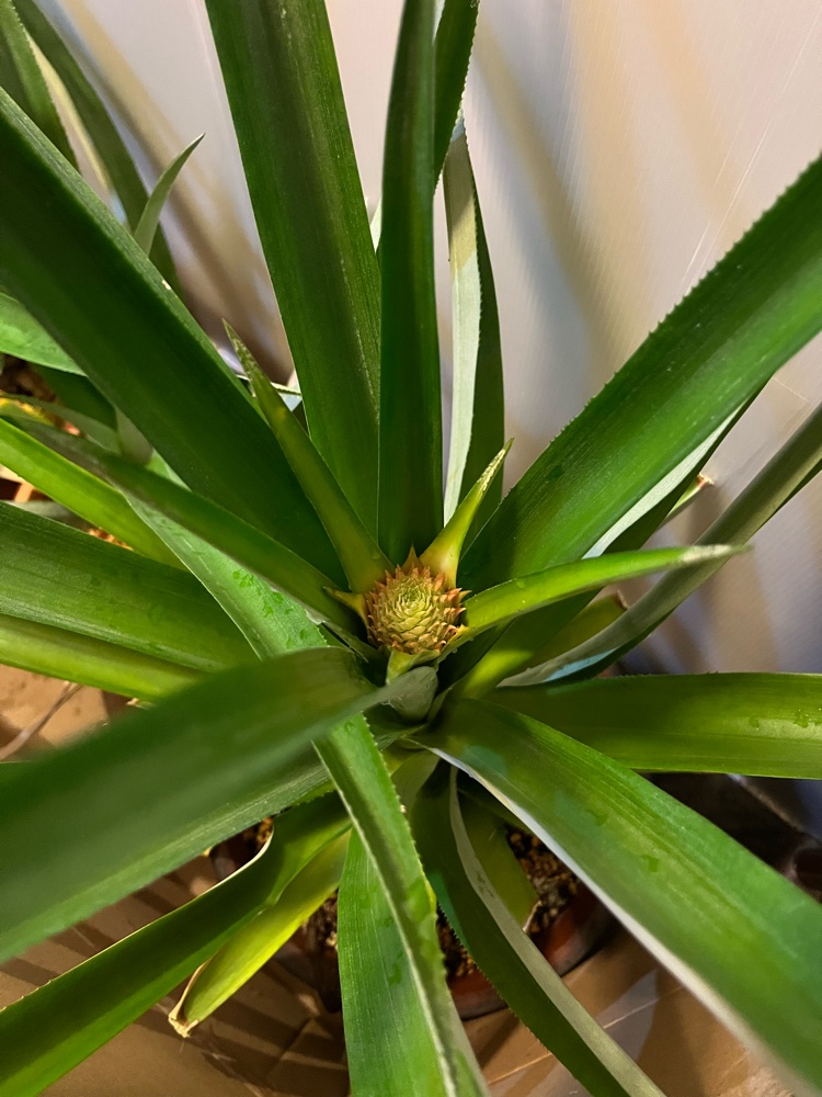 パイナップルのその後です。最低気温も10度を切る事がなくなったので、5月になって室外に出したパイナップルです。もうパイナップルの形になっています。なんか樹脂で作った模型のようです。このまま、大きくなってくれるのか?楽しみです。台湾パイナップル|金鑚パイン|マンゴーパイン|大玉限定・高糖度・完熟栽培|芯まで食べられる甘熟果実|芳醇な香り甘さ溢れる果肉|台農17号/23号 台灣金鑚鳳梨 芒果鳳梨 Taiwan Pineapple|四季の広場厳選トロピカルフルーツ|家庭用 贈答用 母の日 果物ギフト|国内検品”甘熟台湾パイン” 3〜4玉 約4.5〜5kg パイナップル/金鑚パイン/金鑚鳳梨【予約 3月以降】 送料無料